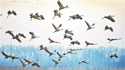 觀鳥者在密云區(qū)拍攝到的灰鶴,系國家II級保護鳥類