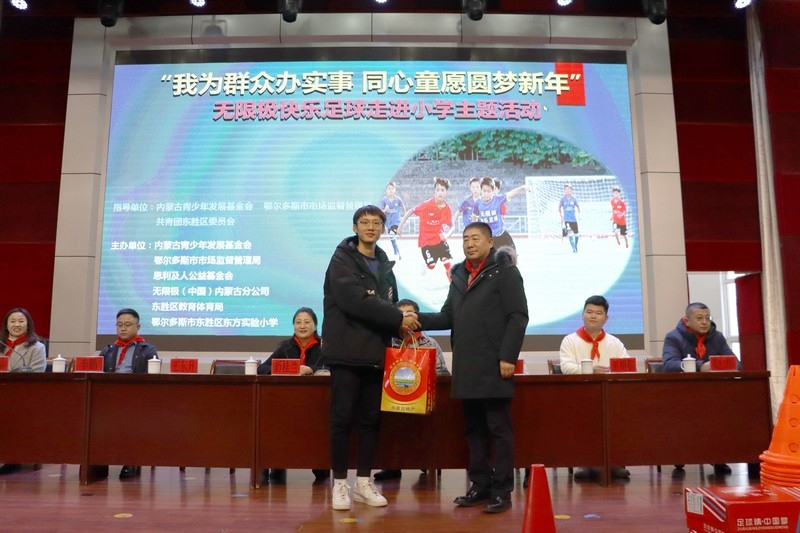 北疆新聞網(wǎng)、北疆新聞APP、北疆云消息 12月3日,思利及人公益基金會、無限極(中國)內(nèi)蒙古分公司攜手內(nèi)蒙古青少年發(fā)展基金會、鄂爾多斯市市場監(jiān)督管理局、共青團(tuán)東勝區(qū)委員會、東勝區(qū)教育體育局、無限極內(nèi)蒙古志愿者協(xié)會走進(jìn)內(nèi)蒙古鄂爾多斯市東勝區(qū)東方實(shí)驗(yàn)小學(xué),開展“我為群眾辦實(shí)事 同心童愿圓夢新年”無限極快樂足球慰問公益活動。為學(xué)校的孩子們送上了一份特別的禮物,由“無限極快樂足球”公益項(xiàng)目提供的足球、球服、球鞋、繞桿、訓(xùn)練桶等足球裝備和訓(xùn)練器材。孩子們在收到捐贈后,露出開心燦爛的笑容。