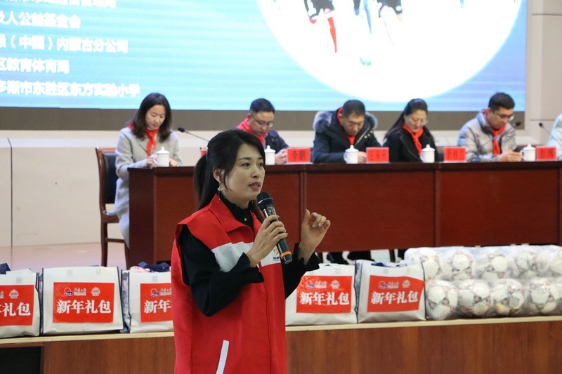 鄂爾多斯市市場監(jiān)督管理局副局長折桂蘭在公益活動上致辭,希望同學(xué)們不要單一地關(guān)注學(xué)習(xí),而要德、智、體、美全面發(fā)展,提升綜合能力,同時用優(yōu)異的成績來回報(bào)每一個愛心人士的無私奉獻(xiàn)與幫助。也希望同學(xué)們分配好時間,能夠熱愛足球,熱愛自已感興趣的運(yùn)動、愛好,這會讓生活更加多姿多彩,也希望同學(xué)們今后能多方面為國家貢獻(xiàn)自己的力量,成為各行業(yè)里的優(yōu)秀人才。