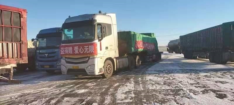 3月1日清晨,錫林郭勒盟至呼和浩特的后山地區(qū)飄著小雪,氣溫在零下10度以下,但是,風(fēng)雪擋不住來自錫林郭勒大草原的一片片愛。一輛17米帶掛卡車長驅(qū)千里十多小時,帶著錫林郭勒大草原的問候,連夜運輸?shù)胶艉秃铺?,只為早點送達(dá)100萬只一次性醫(yī)用外科口罩。這輛卡車上掛著內(nèi)容為“祝青城人民早日戰(zhàn)勝疫情,錫盟公益助力呼和浩特市”和“洶洶疫情不可怕,齊心協(xié)力戰(zhàn)勝它”的條幅,表達(dá)“中國馬都”向“中國乳都”的真切問候。
