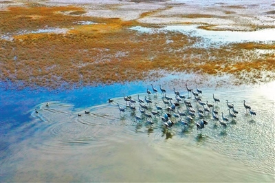 3月的鄂托克草原春光明媚、萬(wàn)物復(fù)蘇。黃河一級(jí)支流——都思圖河兩岸,風(fēng)吹草偃間,珍禽掠影過(guò),灰鶴、赤麻鴨、天鵝、豆雁等各種鳥(niǎo)類在河中嬉戲打鬧,一幅人與自然和諧共生的美麗生態(tài)畫(huà)卷徐徐呈現(xiàn)。