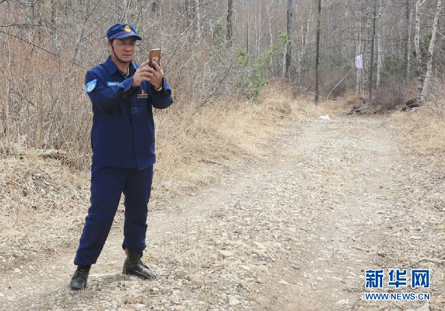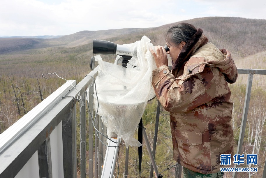 5月11日,57歲的森防瞭望員周桂波站在22米高的瞭望塔上,穿著棉襖棉褲頂著寒風(fēng)瞭望、匯報(bào)、記錄。新華網(wǎng)發(fā)(欒維敬 攝)