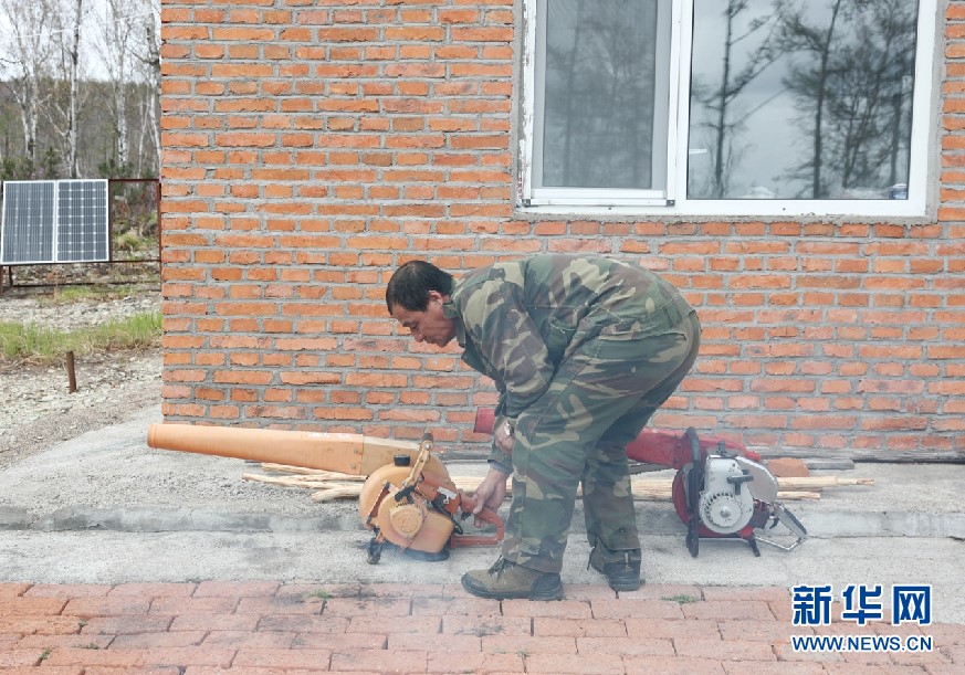晉顏龍保養(yǎng)風(fēng)力滅火機(jī)。新華網(wǎng)發(fā)(欒維敬 攝)
