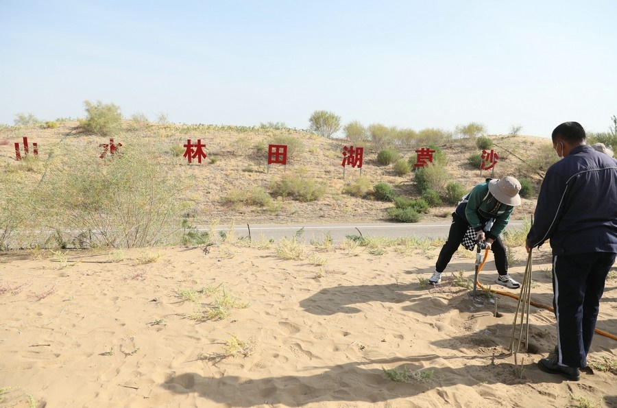 “前人栽樹,后人管護(hù)?!苯衲?0歲的賈文義,是杭錦旗獨(dú)貴塔拉鎮(zhèn)什拉召治沙站站長,也是杭錦旗治沙的“沙三代”。1985年,18歲的賈文義接過父親賈尚付的鐵鍬,擔(dān)起第三代治沙人的使命。賈文義表示,在沙漠中種樹,絕不像網(wǎng)友在平臺上種一棵樹那樣簡單,“植樹造林不是一次就能成功的,是一個(gè)漫長的過程,需要3至5年甚至10年,才能行成一片森林,這是大自然的規(guī)律?!?br/>