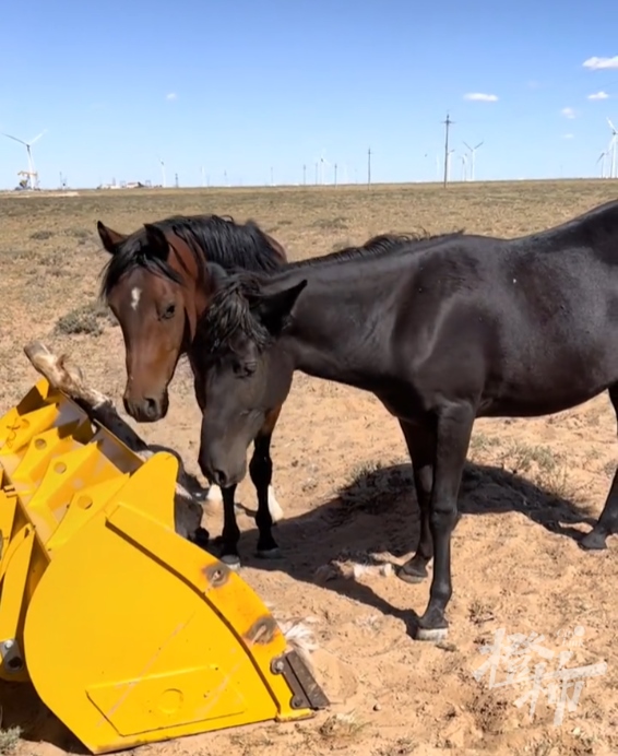 8月30日,內(nèi)蒙古巴彥淖爾烏拉特中旗,一匹老馬去世后,主人用鏟車為它送葬,同伴的兩匹馬依依不舍地?fù)踉谲嚽?,久久不肯離去。