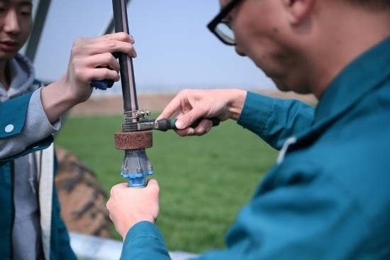 “這個(gè)噴頭換過了,你登記好。”在河南省駐馬店市西平縣高標(biāo)準(zhǔn)農(nóng)田示范區(qū)的麥田里,河南水投柏農(nóng)產(chǎn)業(yè)發(fā)展有限公司運(yùn)營管理部負(fù)責(zé)人劉亞輝一邊擰好噴灌機(jī)的新噴頭,一邊叮囑一起巡檢的王英凡。