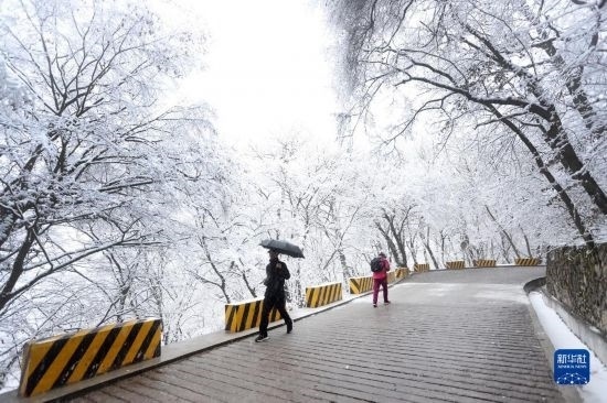 受冷空氣影響,位于甘肅省平?jīng)鍪械尼轻忌骄皡^(qū)迎來(lái)降雪,景色如畫。
