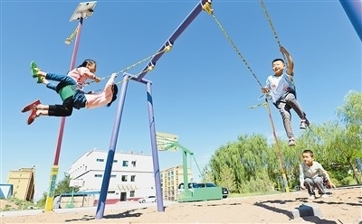 去年以來,甘肅省張掖市民樂縣把生態(tài)及地質(zhì)災(zāi)害避險搬遷與城鎮(zhèn)化建設(shè)相結(jié)合,推動城鄉(xiāng)融合發(fā)展。圖為搬遷到民樂縣樂民新城的孩子們在小區(qū)內(nèi)玩耍。王 將攝(人民圖片)