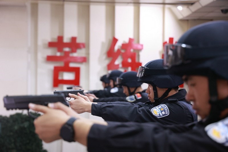 “驗槍,上彈匣,開始射擊!”隨著現(xiàn)場指揮員的口令,密集的槍聲響徹地下靶場。對于特警而言,精度射擊是日?;A訓練,相比其他警種,他們需要完成兩種以上武器的精度射擊訓練,在技巧和精準層面要求更高。同時,本次集訓更增加了戰(zhàn)術攻防應用射擊,攻防雙方以小組作戰(zhàn)的形式,在模擬場景中圍繞劫持人質、武裝對抗等警情開展對抗。小組成員們密切配合,采取戰(zhàn)術動作對房間內(nèi)的嫌疑人進行武力攻擊,對發(fā)現(xiàn)的人質予以保護,擊斃嫌疑人、解救人質。通過多輪次的攻防互換,特警隊員們的臨戰(zhàn)心理、戰(zhàn)斗意識和突擊攻堅戰(zhàn)術有了顯著增強,更進一步提高了團隊協(xié)作能力。