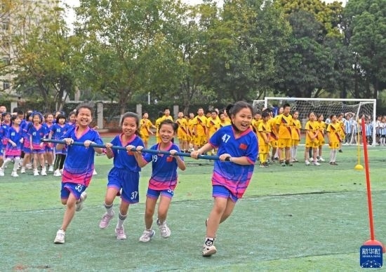 4月17日,孩子們在廣西南寧市濱湖路小學進行民族體育比賽。