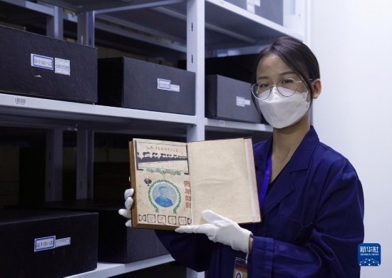 4月28日,在上海市檔案館的保護(hù)技術(shù)部,檔案修復(fù)師任翹楚利用專業(yè)設(shè)備對(duì)檔案進(jìn)行展平處理。