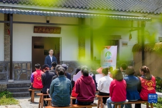 5月4日,在浙江省湖州市長興縣和平鎮(zhèn)狄家 村,當(dāng)?shù)厍嗄旮刹繃惶霉采锑l(xiāng)村改革,暢談家鄉(xiāng)發(fā)展。