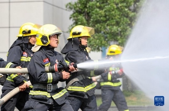 5月4日,貴州省銅仁市玉屏侗族自治縣消防救援大隊青年消防員在進行訓(xùn)練。