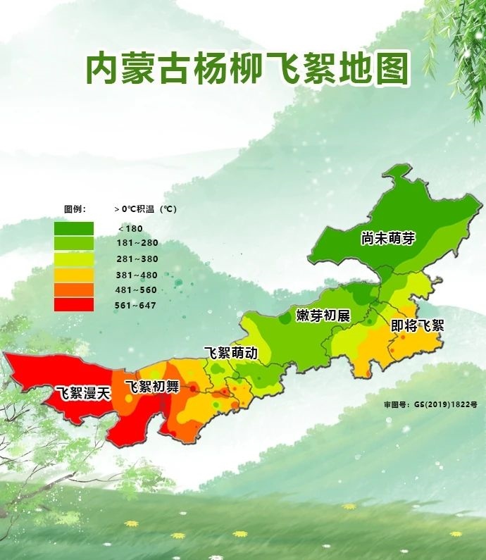 根據(jù)內(nèi)蒙古氣象部門提供的楊柳飛絮地圖可以看出,目前,阿拉善、烏海地區(qū)已經(jīng)進入飛絮漫天階段,巴彥淖爾、鄂爾多斯、呼和浩特、包頭地區(qū)已經(jīng)陸續(xù)進入飛絮萌動階段和飛絮初舞階段,通遼大部、赤峰東南部地區(qū)即將飛絮,其余地區(qū)還處于嫩芽初展和尚未萌芽階段。