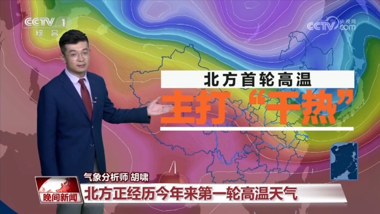 氣象分析師 胡嘯:目前,我們國家北方正在經(jīng)歷今年第一輪大范圍的高溫天氣過程。這一輪高溫天氣過程最大的特點,就是干熱。伴隨著一個高壓擠區(qū)的逐漸東移,高溫逐漸顯現(xiàn),在擠區(qū)之內(nèi)是下沉增溫,晴朗少云的天氣。