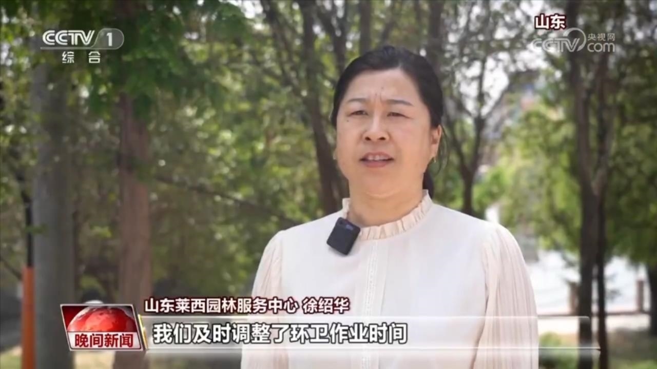 山東萊西園林服務(wù)中心 徐紹華:我們及時調(diào)整了環(huán)衛(wèi)作業(yè)時間,當(dāng)氣溫達(dá)到35℃以上時,減少人工戶外作業(yè),加大機(jī)械作業(yè)頻次。同時,我們聯(lián)合全市70多家愛心商戶,并建了30多個環(huán)衛(wèi)休息間,方便大家休息納涼。