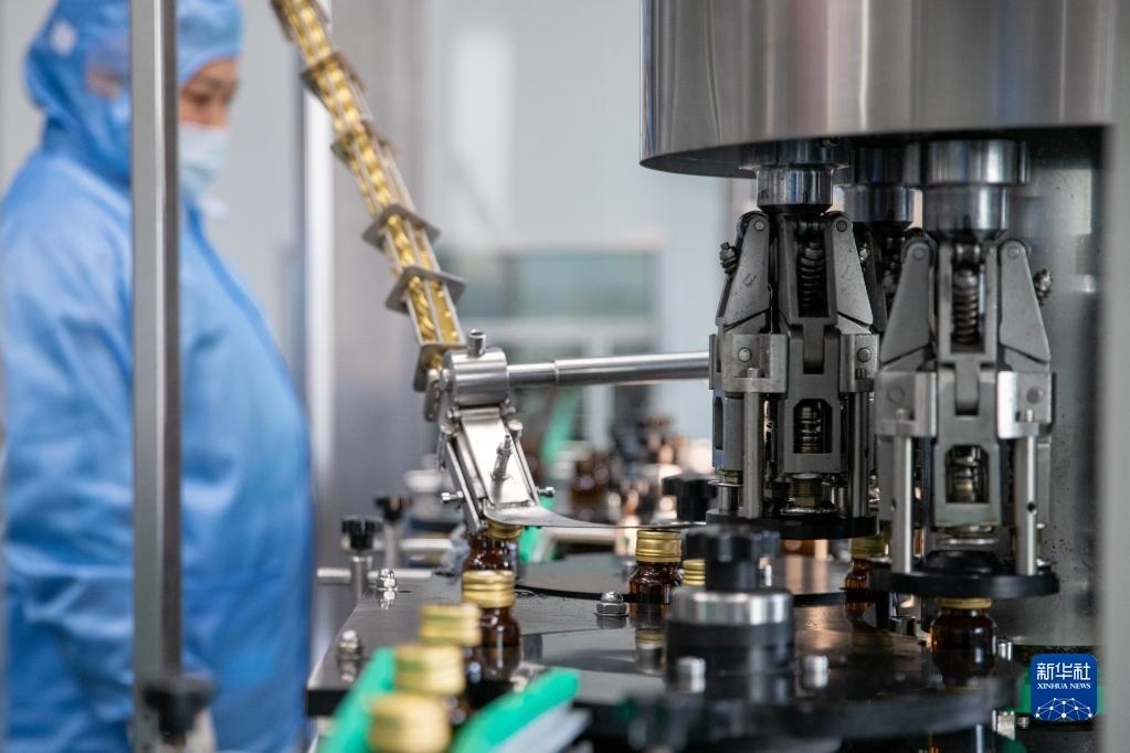 5月24日,在伊春菁樺生物科技有限公司生產(chǎn)車間內(nèi),工人在進(jìn)行樺樹汁飲品灌裝作業(yè)。