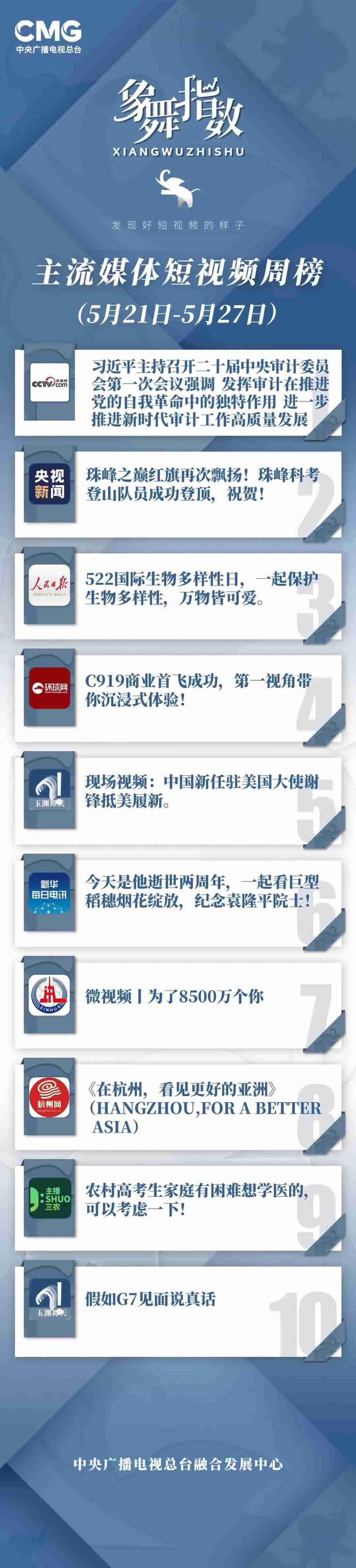 象舞指數(shù)|短視頻周榜(5月21日—5月27日)