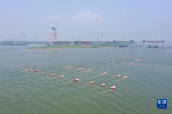 這是6月2日在水域救援實戰(zhàn)演習(xí)現(xiàn)場拍攝的消防舟艇編隊(無人機照片)。