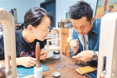 作為今年上海市為民辦實(shí)事項(xiàng)目“社會大美育課堂”的重要組成部分,今年上海市民藝術(shù)夜校春季班共開設(shè)教學(xué)點(diǎn)位123個、課程278門、招收學(xué)員6507人。夜校學(xué)習(xí)內(nèi)容包括傳統(tǒng)文化、時尚文化、非遺技藝、江南文化以及區(qū)域文化等。圖為5月8日,上海市寶山區(qū)淞南鎮(zhèn)社區(qū)文化活動中心,老師(右)正在指導(dǎo)學(xué)生皮具制作技巧。王 初攝(人民圖片)