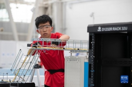 6月6日,選手在進行工業(yè)機器人系統(tǒng)操作員項目比賽。