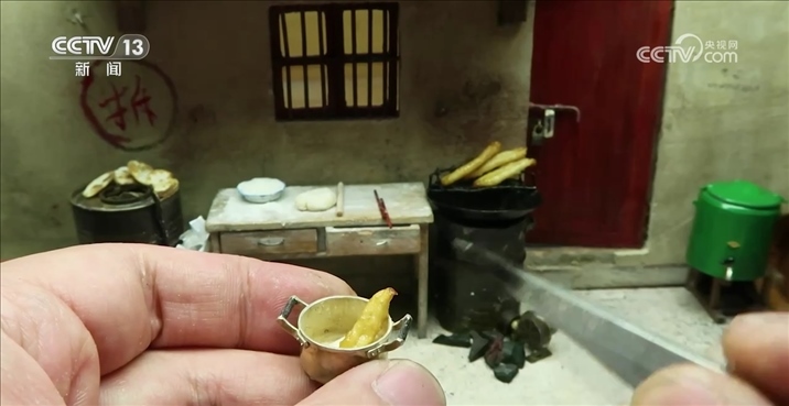 趙培藝:有一位網(wǎng)友外婆腿腳不好,沒有辦法回老家。然后他跟我說,能不能給他復(fù)原一個(gè)小的,給她放在床頭上讓她看著,大概拍了二十幾張照片,然后測量數(shù)值是測了大概三四次,他原本是什么材質(zhì),我就盡量去用什么材質(zhì),例如小的瓷磚,我都是去廠里訂的小陶瓷片,像地板之類的,我都是用手工燒的小紅磚去做。想家里了,一歪頭就能看到。