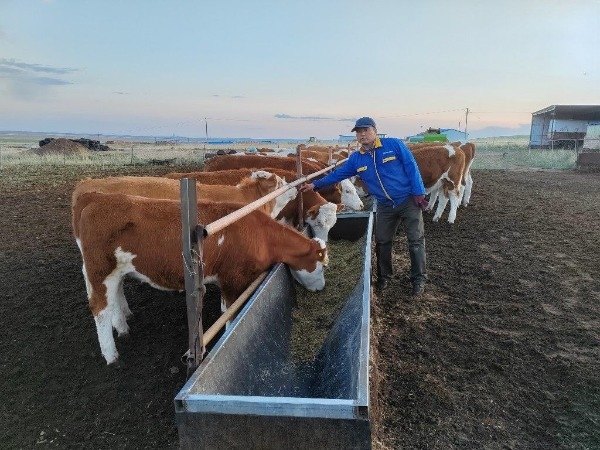 張愛忠今年49歲,他有著18年的養(yǎng)牛經(jīng)驗(yàn),是當(dāng)?shù)氐酿B(yǎng)牛專業(yè)戶。近年來在政策的引導(dǎo)下,張愛忠不斷提升養(yǎng)殖技術(shù)、完善基礎(chǔ)設(shè)施、建立暖棚和青儲(chǔ)窖,引進(jìn)和培育個(gè)頭大、肉質(zhì)好的西門塔爾牛。2017年,他注冊登記阿巴嘎旗雲(yún)峰家庭牧場,經(jīng)過幾年的精心飼養(yǎng)和改善引進(jìn),他的肉牛規(guī)模從40頭發(fā)展到200頭。2019年,他的牧場被認(rèn)定為盟級肉牛“核心群”。