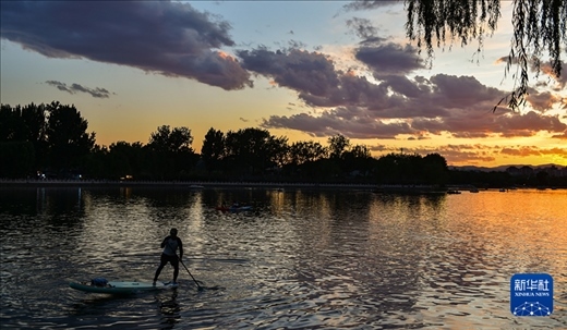 2023年6月10日,夕陽下的什剎海。新華社記者 陳鐘昊 攝