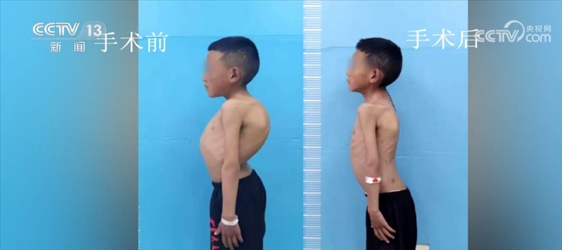 北京大學(xué)人民醫(yī)院脊柱外科主任 劉海鷹:另外這兩個特別重的孩子,我們做的頭盆環(huán)牽引,牽引上以后,先到康復(fù)醫(yī)院那邊,定期給它一點一點撐開,差不多兩三個月以后,撐到一定程度以后,把胸腔都打開了,肺功能也改善了以后,對于麻醉對于手術(shù)來說更安全,另外對于神經(jīng)功能也比較安全了,在這種前提下我們做一個固定的矯正的手術(shù)。預(yù)期來說,矯正70%-80%應(yīng)該沒問題,矯正到外表上基本上看不見。
