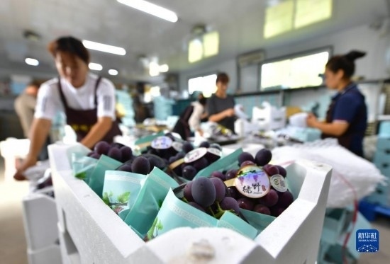 近日,遼寧省燈塔市種植的遼峰葡萄喜迎豐收。燈塔市出產(chǎn)的遼峰葡萄遠近聞名,目前種植面積約1萬畝。當(dāng)?shù)匾研纬善咸雅嘤⒎N植、銷售、倉儲、加工相關(guān)產(chǎn)業(yè)鏈,葡萄是當(dāng)?shù)剞r(nóng)民致富增收的特色產(chǎn)業(yè)。