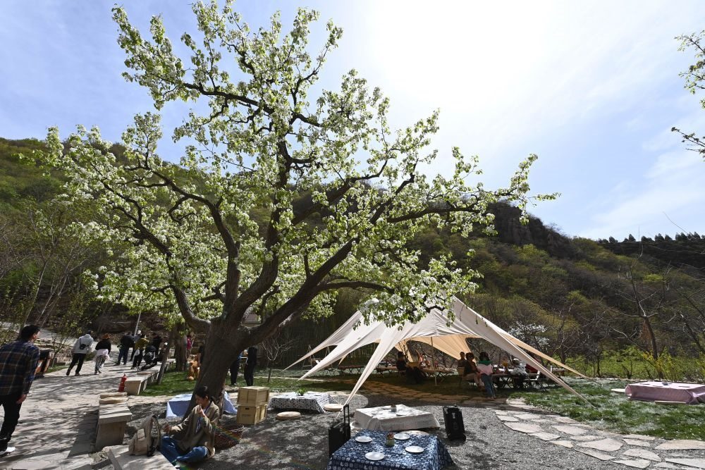 4月15日,游客在天津市薊州區(qū)梨木臺景區(qū)內(nèi)游玩。新華社記者 趙子碩 攝