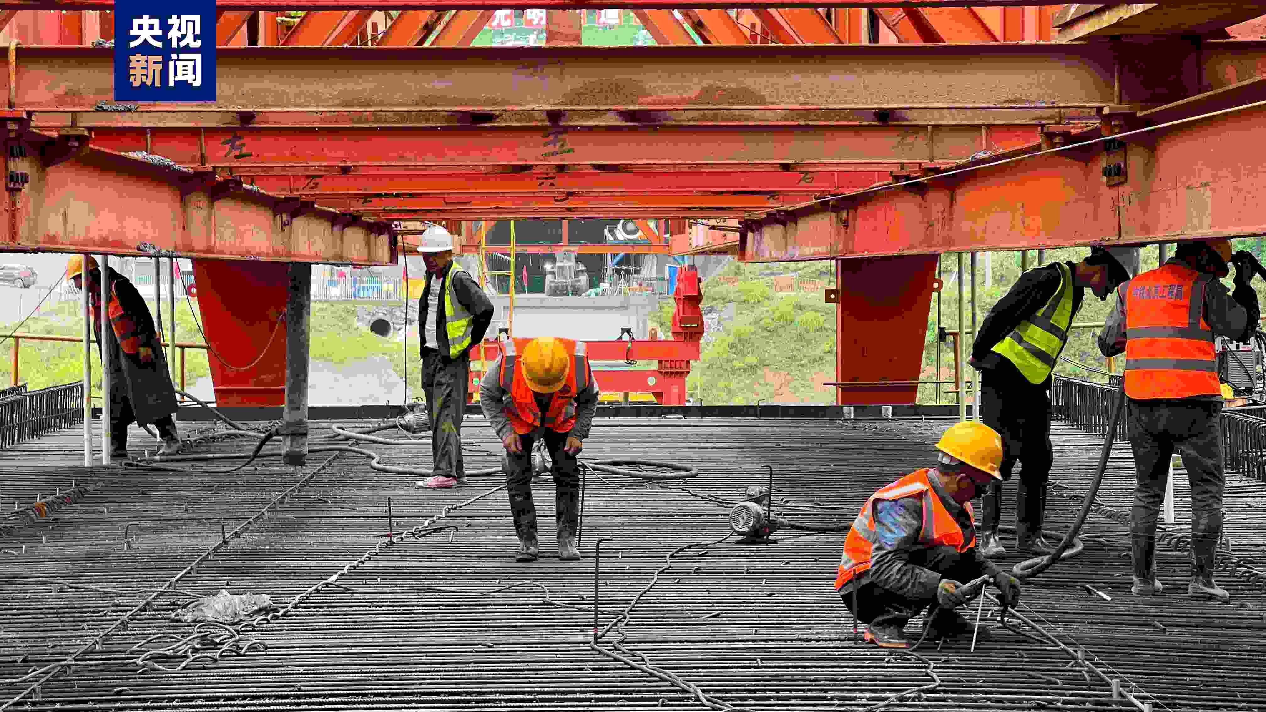 河水壩大橋位于重慶市開州區(qū)巫山鎮(zhèn)河龍村北側,橋址跨越河谷地形起伏較大,植被茂密,水面寬約12米,橋址地層巖性主要為軟塑狀粉質黏土,層厚約2.1米,具有承載力低、壓縮性高、厚度分布不均等特點,地質條件較為復雜。本次澆筑成功的是河水壩大橋首孔現(xiàn)澆梁,經(jīng)過施工人員連續(xù)10小時的奮戰(zhàn),孔長32m,高3.03m,重約900t的移動模架現(xiàn)澆梁順利完成混凝土澆筑。據(jù)中鐵北京工程局成達萬高鐵項目一工區(qū)經(jīng)理烏小平介紹:“河水壩大橋首孔現(xiàn)澆梁采用移動模架現(xiàn)澆法施工,制梁具有機械化程度高、靈活性強、節(jié)約人力成本、施工周期短、使用輔助設備少、重復利用性高等特點,既保證了工程質量,又能加快施工進度,具有良好的經(jīng)濟效益。”移動模架現(xiàn)澆法施工有效解決了控制性工程長大隧道架梁機無法及時架梁的問題,縮短了整體工期,確保項目按期順利推進。