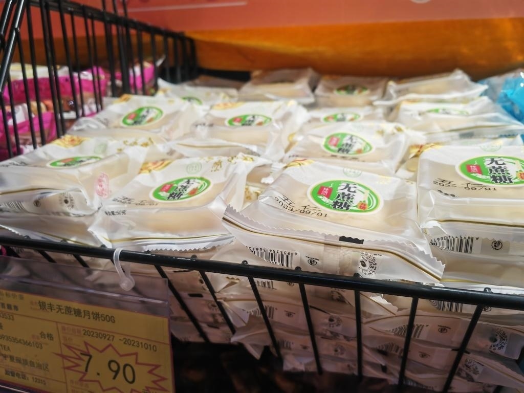 超市內(nèi)銷售的無蔗糖月餅。新華社記者 蘇醒 攝
