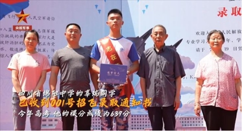 2023年度空軍首批招飛錄取通知書發(fā)放。收到001號錄取通知書的是四川省綿陽中學(xué)的辜瑞同學(xué)。今年高考,他的裸分成績?yōu)?39分,有望入圍空軍與北京大學(xué)、清華大學(xué)、北京航空航天大學(xué)聯(lián)合培養(yǎng)“雙學(xué)籍”飛行學(xué)員預(yù)選對象。