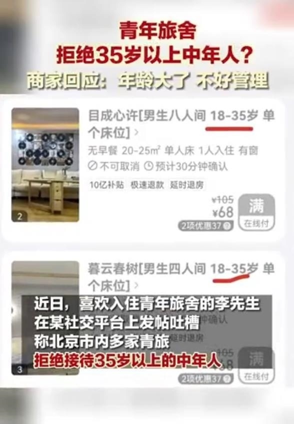 近日,#青旅不接待35歲以上人群#話題沖上熱搜,引發(fā)熱議。該話題源于一網(wǎng)友發(fā)布的帖子。該帖子表示,某平臺上北京不少青旅商家拒絕年齡35歲以上的人群入住。該網(wǎng)友詢問原因,得到的回答是“年齡大的上下床不安全容易出事?!睂Υ舜饛?fù),不少網(wǎng)友不能認同,認為是“借口”。