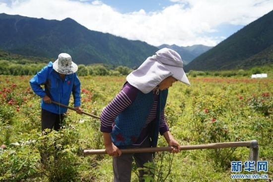 7月22日,員工正在“工布花谷”工作。新華網(wǎng)發(fā) 旦增晉扎 攝