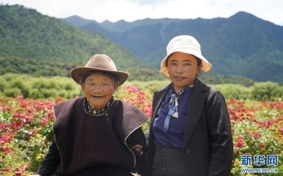 家在朵當(卡達)村的索朗卓瑪帶著自己81歲的母親前來賞花。她說,“村子里能開出這么漂亮的花,感到特別高興。帶媽媽來賞花,再拍拍照,很開心?!蹦概说男δ樤诨ǘ涞挠骋r下更加燦爛。