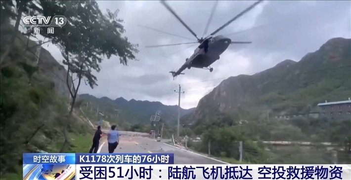 8月1日下午4:00,K1178次列車被困51小時后,某陸航旅4架滿載應急物資的飛機,克服不利氣象因素,在北京門頭溝地區(qū)執(zhí)行空投任務,并為K1178次列車空投救援物資。然而,由于沿河城站位于山谷中,地形狹長,周邊環(huán)境復雜,再加上氣象條件不好,空投一開始并不順利。