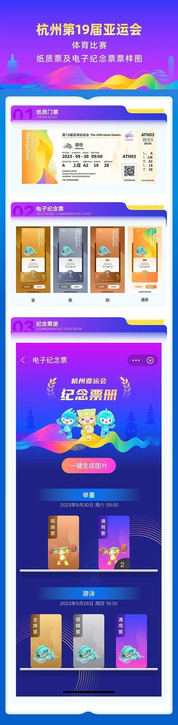 2023年8月9日,杭州亞組委發(fā)布了體育比賽紙質(zhì)票及電子紀念票票樣設(shè)計圖。