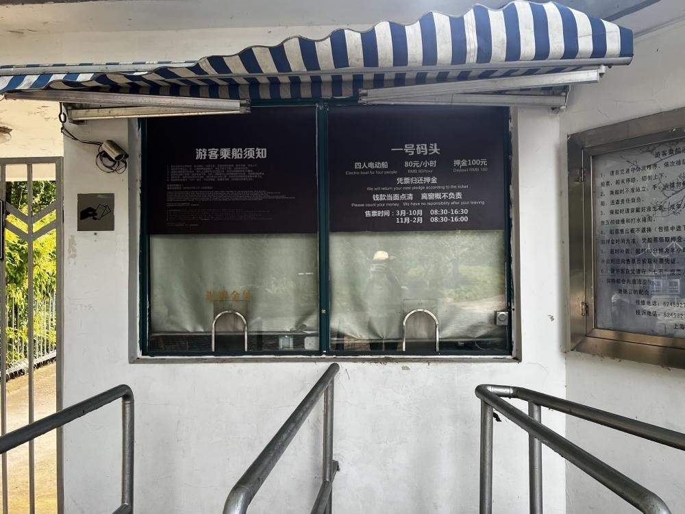 當(dāng)記者問起是否有現(xiàn)金購買渠道時,工作人員指路了附近的人工售票窗口,同時補充道:“收受現(xiàn)金的售票員有時會離開崗位,不久會回來?!庇浾咴诖说赝A袅艘恍r,注意到長風(fēng)公園內(nèi)類似的售票窗口有兩個,營業(yè)至16:30。然而,整整一個小時內(nèi),兩個窗口均無人在崗。