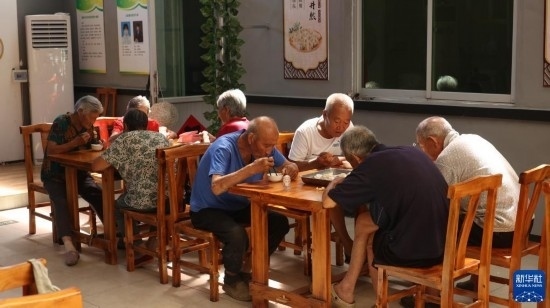 8月22日,老人在青縣曹寺鎮(zhèn)曹寺村的孝老食堂用餐。