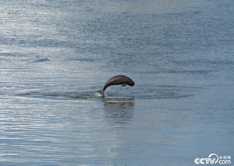 湖北宜昌:江豚在長(zhǎng)江葛洲壩水域戲水。