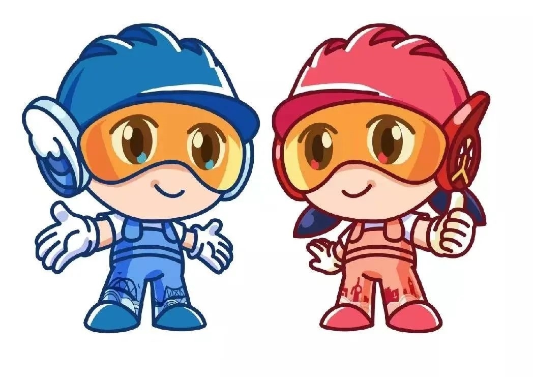 本屆大賽的吉祥物為“天天、津津”,形象為“一男、一女”兩個青年人物的造型,具有青春、活力、向上的鮮明特點,色彩以藍色、紅色為主色調,突出“技能藍、青春紅”,與大賽會標“技”字標識相呼應;服飾上通過統(tǒng)一的工裝服、安全帽、護目鏡、藍牙耳機等外形設計,形象鮮明地展現(xiàn)新時代技能人才的外表特征;通過人物專注自信的表情和張開雙臂、舉手點贊等形態(tài),凸顯了技能人才“力爭上游、奮勇拼搏”的精神面貌和天津人民“自信包容、樂觀好客”的性格特質。同時,通過摩天輪造型耳機、特色橋梁、港口、天津新老標志性建筑等形象設計,展現(xiàn)天津的城市元素。