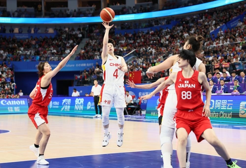 決賽開場(chǎng),兩隊(duì)球員都略顯緊張,中國隊(duì)幾次中投失手,日本隊(duì)數(shù)次快攻也未能建功。依靠韓旭在內(nèi)線的牽制,黃思靜連續(xù)命中2記遠(yuǎn)投,李夢(mèng)突破打成“2+1”,中國隊(duì)打出17:7的開局。面對(duì)身材更高大的中國姑娘,日本球員通過不斷突破傳球創(chuàng)造得分機(jī)會(huì)。首節(jié),中國隊(duì)26:16領(lǐng)先對(duì)手。