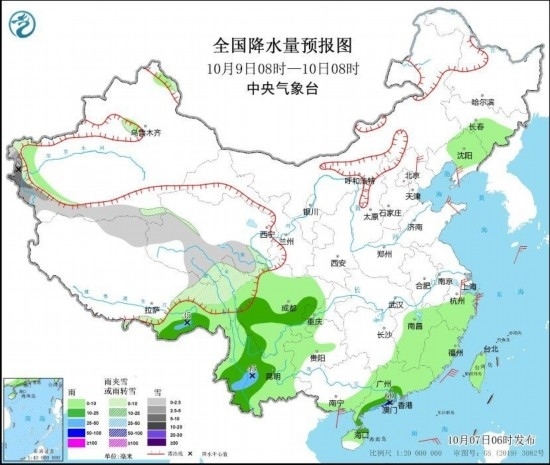 7日至9日,甘肅南部、四川、重慶、貴州大部、云南等地有降雨過程,部分地區(qū)有中到大雨;西藏東部、青海中南部等地有小到中雪或雨夾雪,局地有大雪或暴雪。