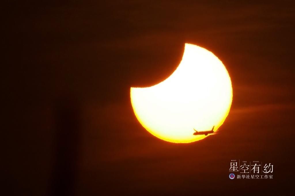 2023年4月20日出現(xiàn)在印度尼西亞雅加達上空的日食景觀。新華社發(fā)(祖卡南攝)