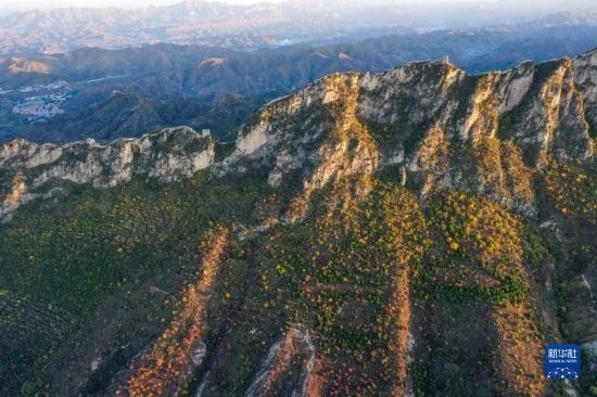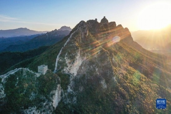 朝陽下的司馬臺(tái)長城(無人機(jī)全景照片,10月15日攝)。