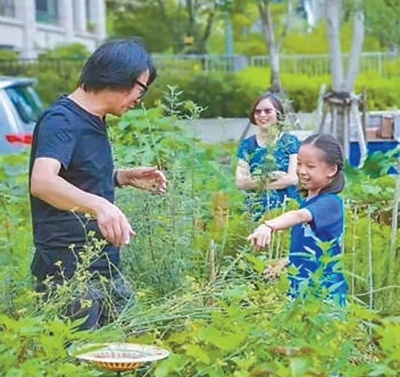 社區(qū)居民在創(chuàng)智農(nóng)園了解種植相關知識。上海四葉草堂青少年自然體驗服務中心供圖