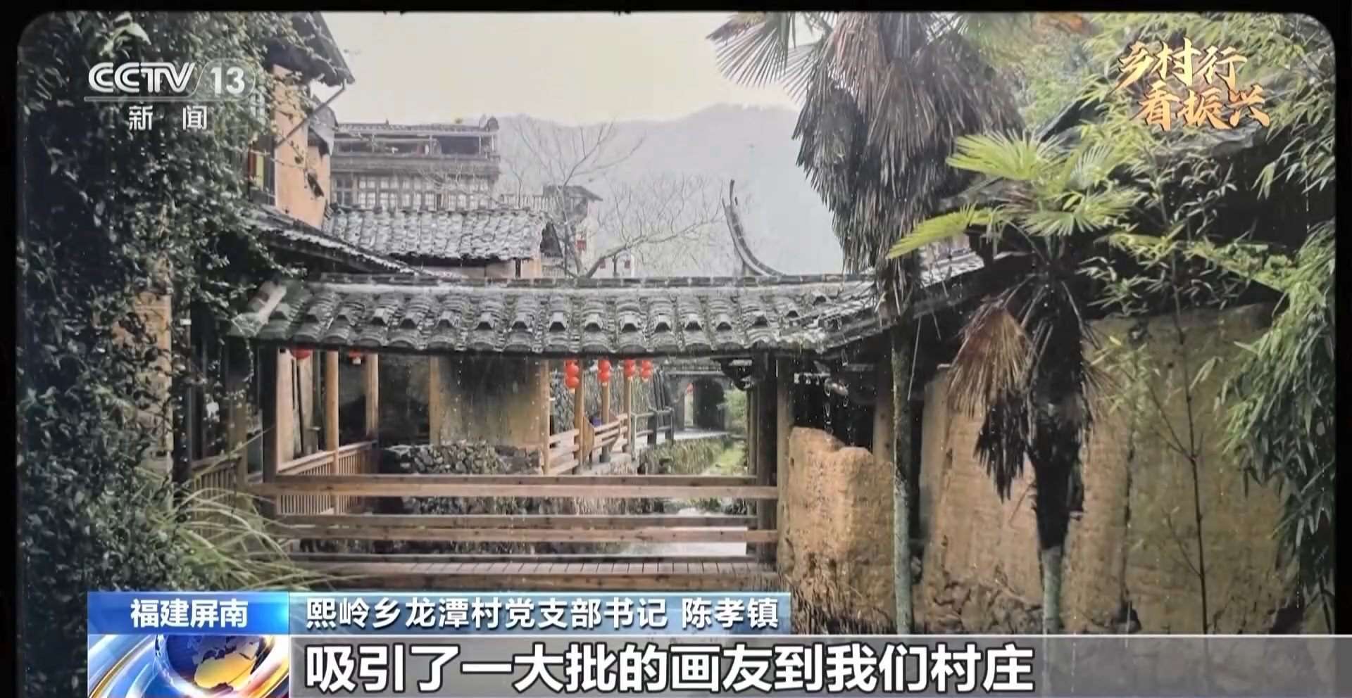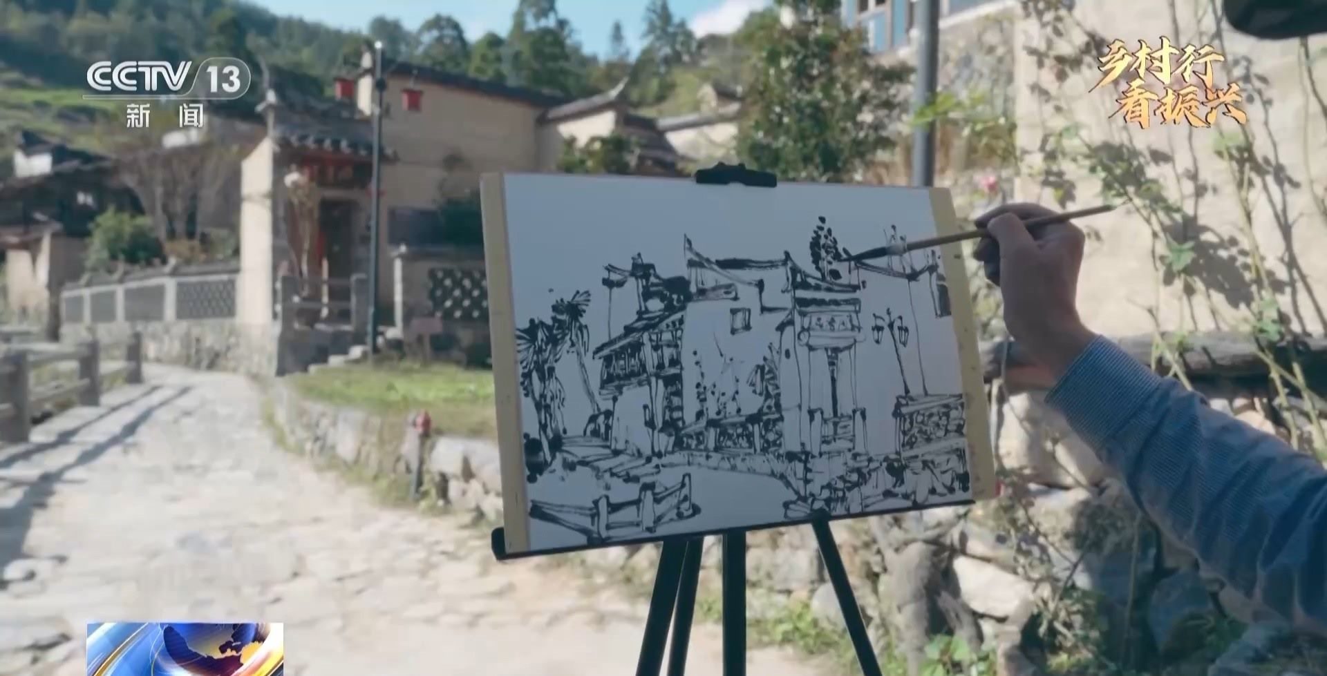 總臺(tái)記者 林姍蓉:這里就是龍?zhí)洞?。沿著溪水一路往下,你可以看到兩岸都是這種高低錯(cuò)落的土夯的民居。這個(gè)季節(jié)柿子都熟了,到處都可以看到村民曬柿餅、曬稻谷,黃綠交錯(cuò)的,非常好看。來到龍?zhí)?,還有一點(diǎn)非常讓我印象深刻,就是在這里每走幾步,我都可以看到一個(gè)正在寫生創(chuàng)作的藝術(shù)家。