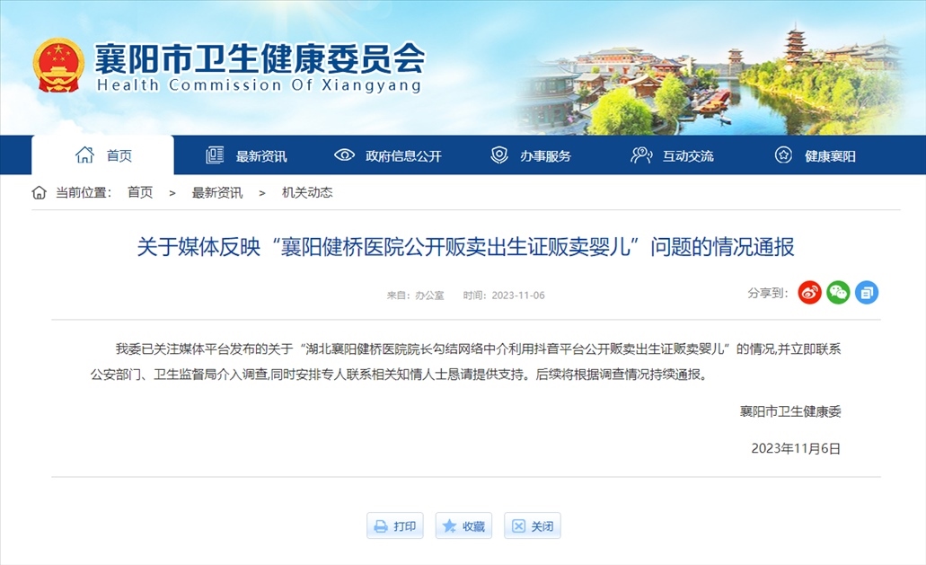 【8點(diǎn)見(jiàn)】醫(yī)院院長(zhǎng)被舉報(bào)涉嫌販賣出生證 襄陽(yáng)衛(wèi)健委通報(bào)